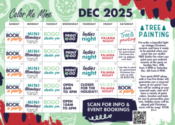 Last seating to paint is two hours before posted closing time. Painting stops 30 minutes before posted closing time.